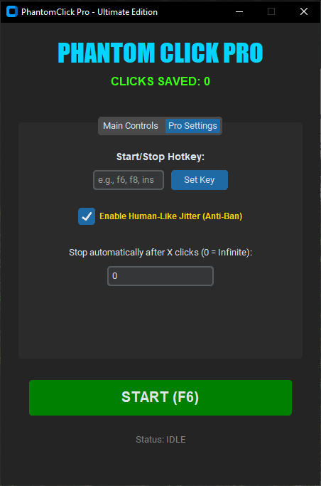 PhantomClick_Pro.exe. - Set your interval and enable Jitter in the Settings tab.